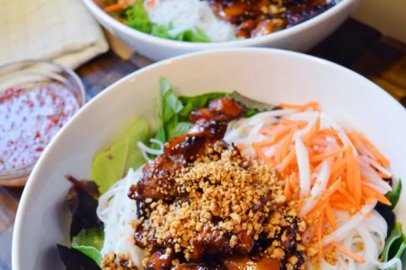 You’ll begin with a comforting bowl of Chao Ga (Vietnamese chicken rice porridge), then roll up your sleeves for the hands-on portion as you prepare your own fresh spring rolls. For the main course, enjoy the bright, bold flavors of Bun Thit Nuong (rice vermicelli salad with chicken), and end the evening with a silky, homemade Vietnamese flan.